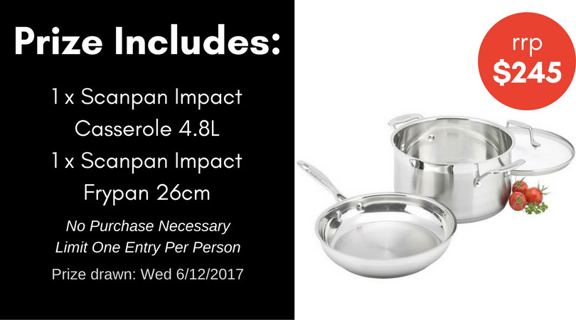 Simply Subscribe to the Tableking Newsletter for your chance to win the Scanpan Impact 2 piece starter cookware set. No purchase necessary. Offer available to Australian residents over the age of 18. No Purchase Necessary NSW Lotteries Permit Number: LTPM/17/01761