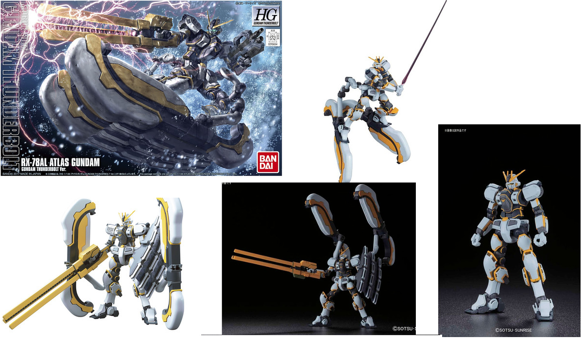 A single HG Kit of the Atlas Gundam from "Gundam Thunderbolt season 2"  So, minuteman can ship this out to anywhere in the world.  Along side the kit he will also include a display stand.   Lets be honest, this guy's too poseable to just leave him in a standing position for display!
