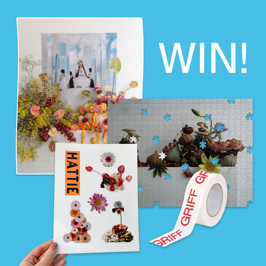 Follow Griff on Spotify for your chance to win a limited edition poster of Hattie Molloy's bespoke floral arrangement, a 500 piece puzzle and sticker set courtesy of Hattie Molloy and Griff Tape. There are 5 prizes to be won.