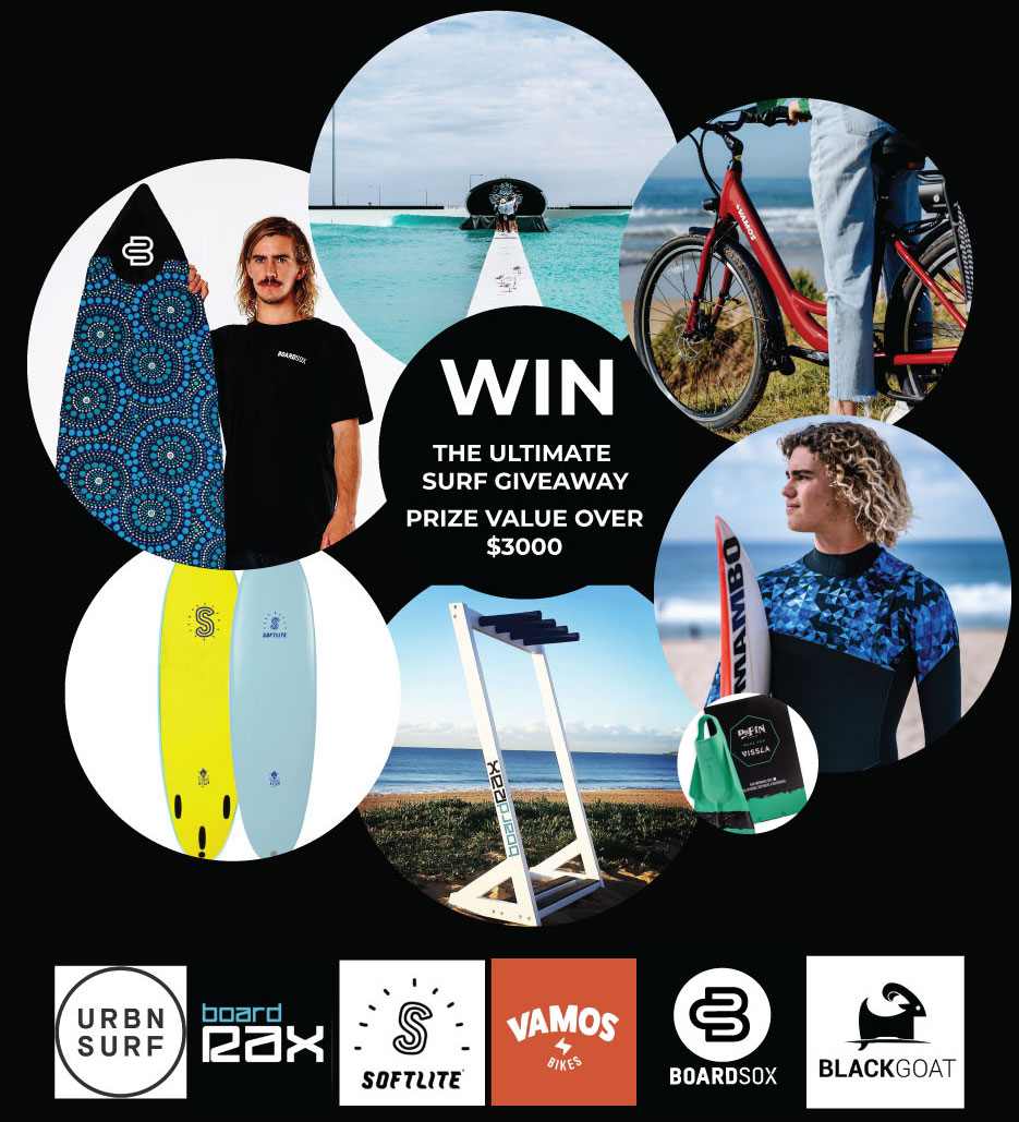 1 x Boardsox Surf Board Covers valued at $300 - 1x Double Pass to URBNSURF Melbourne valued at $158 - 1x BoardRax SurfBoard Stand valued at $180.00