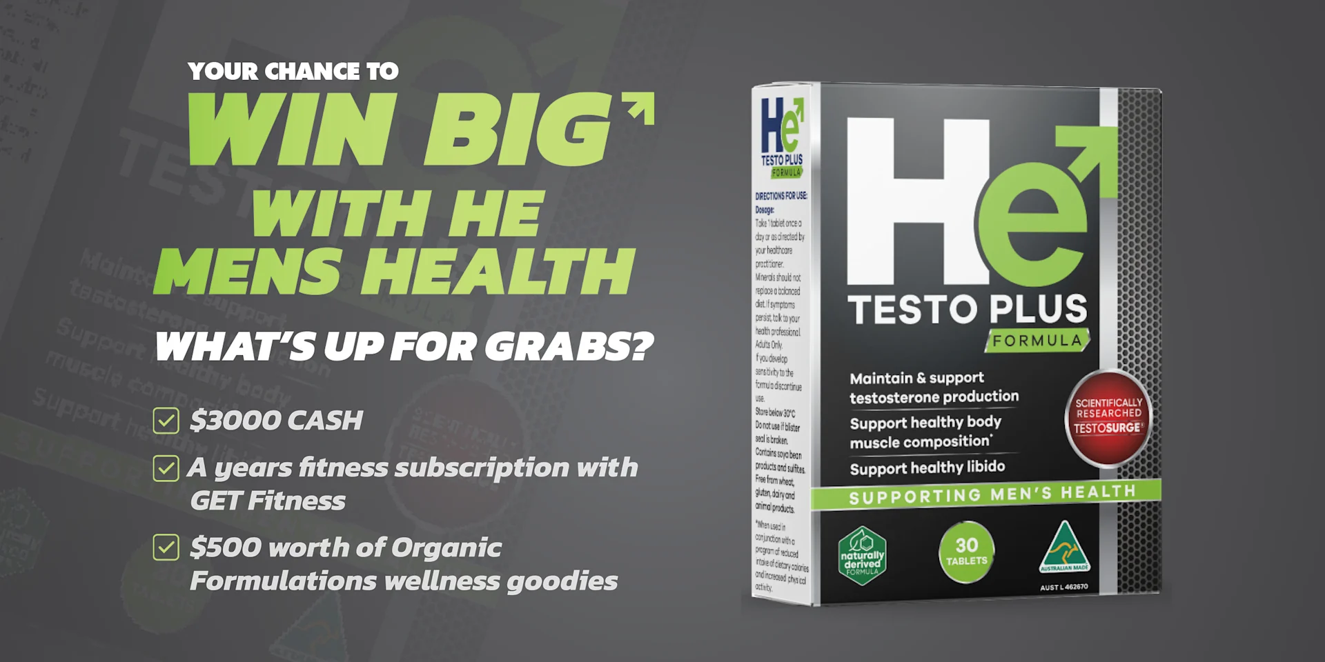 Entry is conditional upon entrants purchasing any He product in a single transaction at Chemist Warehouse or Epharmacy (in-store or online) and providing proof of such transactions in the form of a valid purchase receipt number and entering online via the above websites.