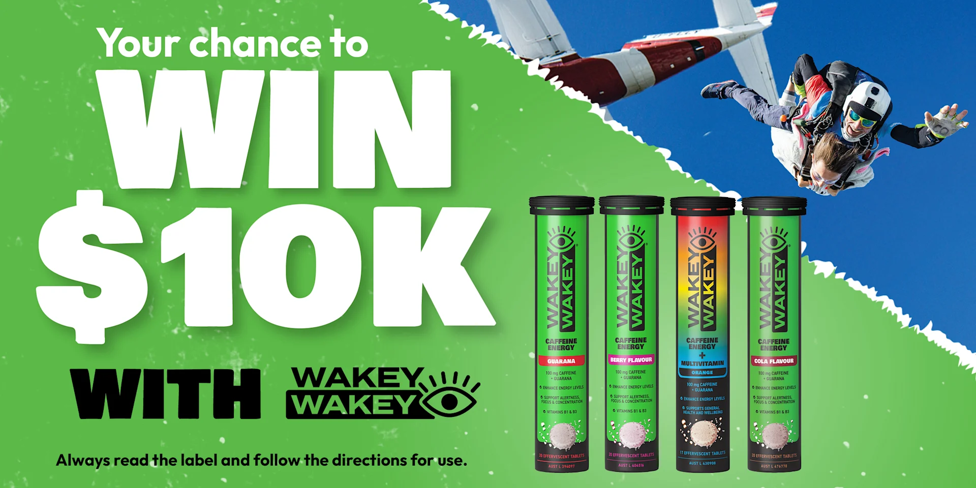 Competition entries can be made from 00.01am AEST on 30/10/25 until 11.59pm AEST 31/12/25. AU Res 18+. Retain receipts. Max 1 entry per transaction. Max 1 entry per day. Purchase any Wakey Wakey product. 1 Major prize winner will receive $10,000 AUD. Drawn 02/01/26. Permits - ACT TP 25/01510, SA - T25/1122