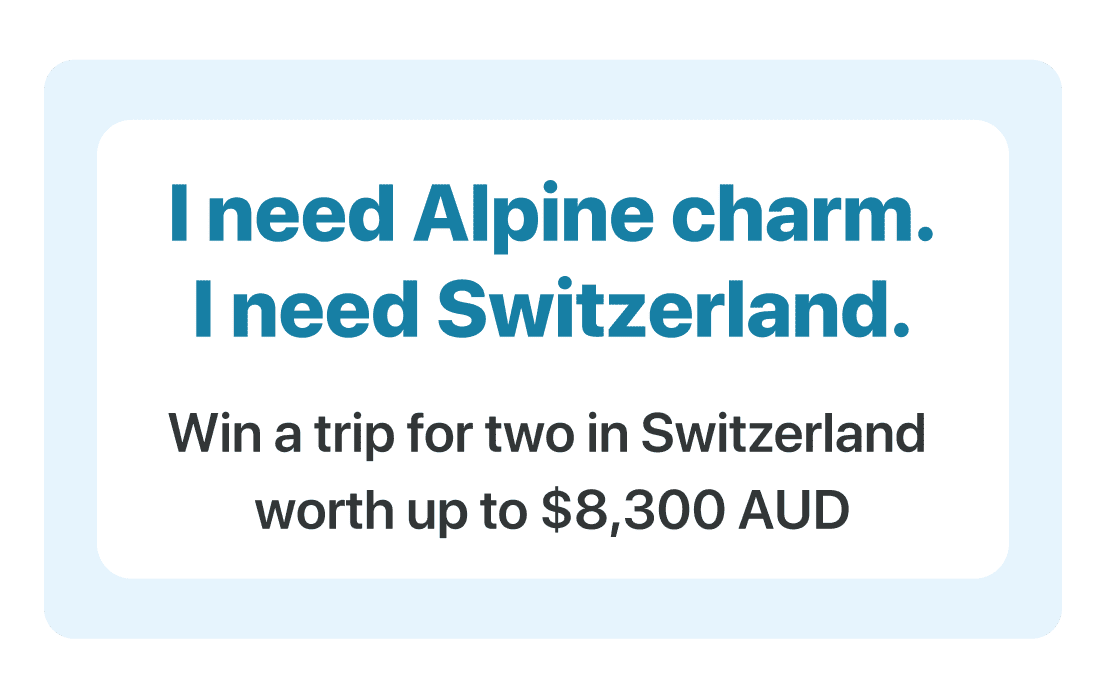 Enter by March 31st, 2026 for your chance to win the 10-day Grand Train Tour of Switzerland – Top Attractions for two! Discover Switzerland’s most iconic sights on a breathtaking panoramic rail journey. Don’t miss out — enter now! (Flights not included.)